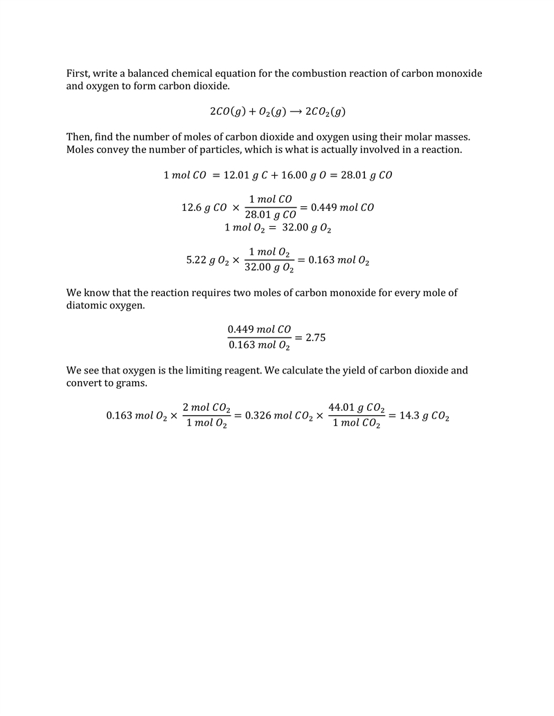 When 12.6 grams of carbon monoxide is allowed to react with 5.22 grams of oxygen gas how many grams of carbon monoxide are formed?