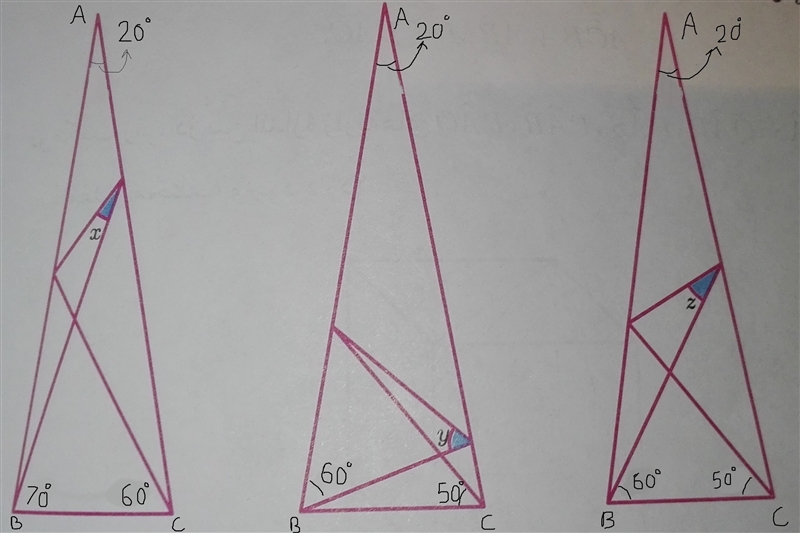 Who can solve this question? (20 pts!!!!!!!!!!!!!!!!!!!!!!!!!!!!!!!!!!!!!!!!!!!!!!!!!!!!!!!!!!!!!!!!!!!!!!!!!!!!!!!!!!!!!!!!) find x,y & z at this tree same triangle (AB=AC)…