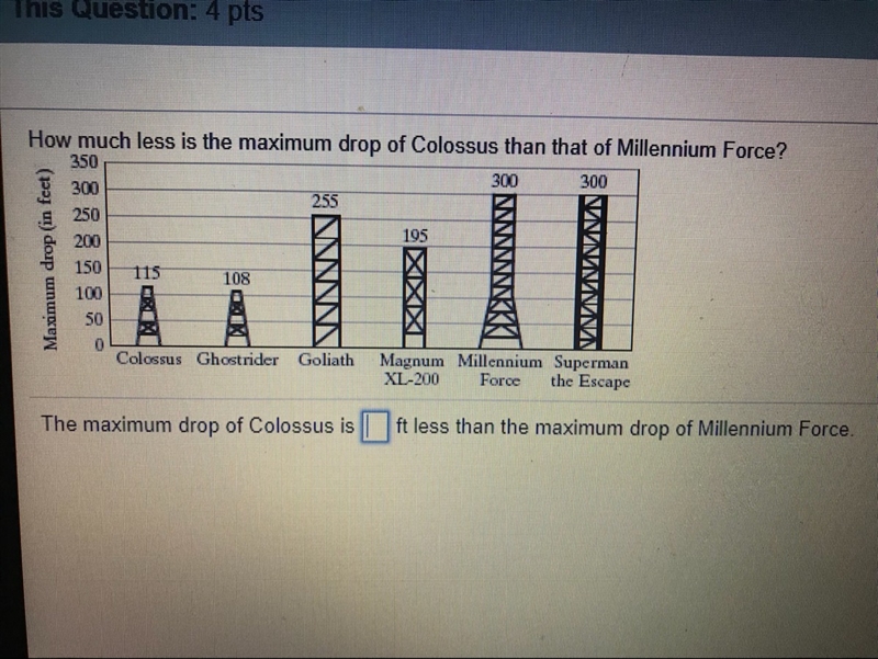 The maximum drop of Colossus is 185ft less than the maximum drop of Millennium Force.