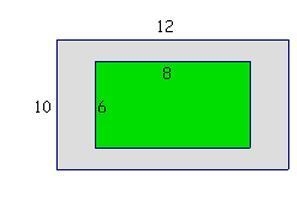 So the area of the side walk is 12*10=120 but you have to minus the area of the grass which is 6*8=48 so 120-48=72
