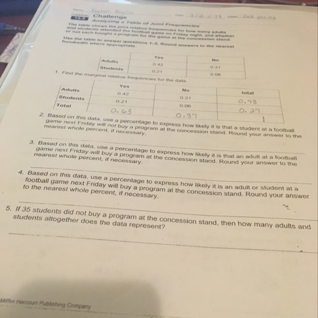 The value 0.63 is the total for the "Yes" column