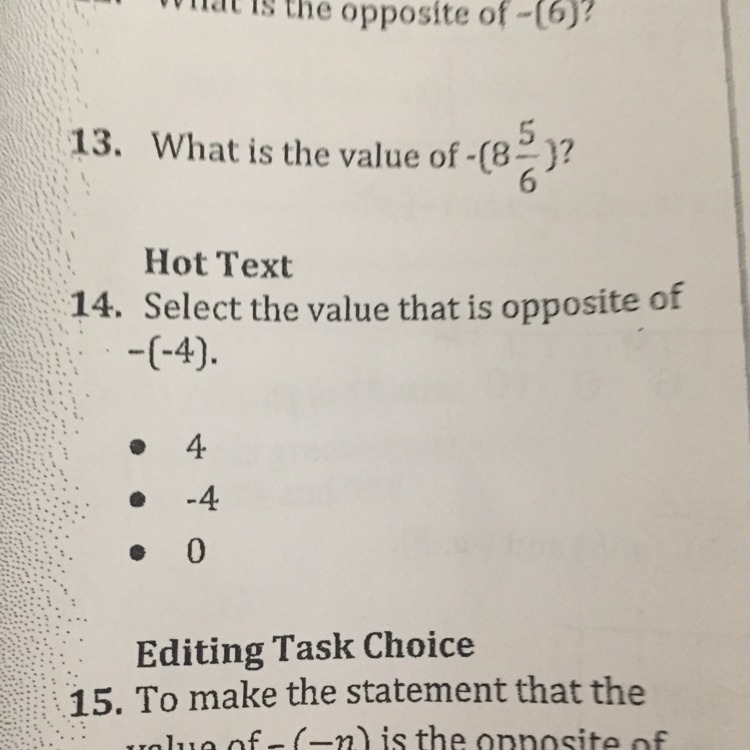 -(-4) = 4, so the opposite, if I understand what they mean, would be -4.
