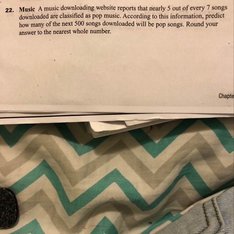 The proportion pop/total = 5/7 is presumed to hold for the next 500 songs.