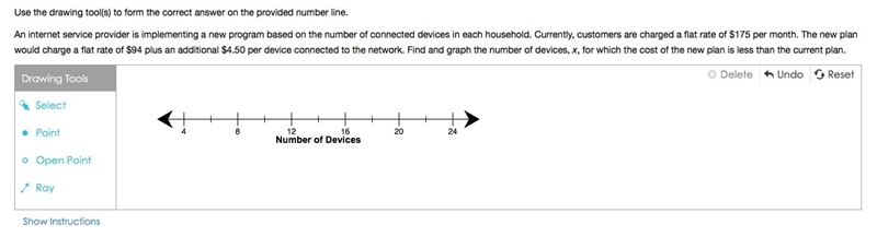 So the number of devices must be less than 18. Draw an open circle at 18 with a ray going to the left to show those numbers.