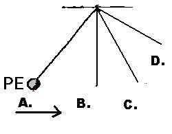 At what point in the swing of the pendulum is the potential energy completely converted into kinetic energy? A) B) C) D)