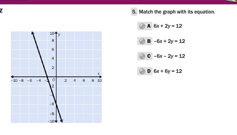 The answer is C. -6x is the y int. up 2 over one 2y is the slope.