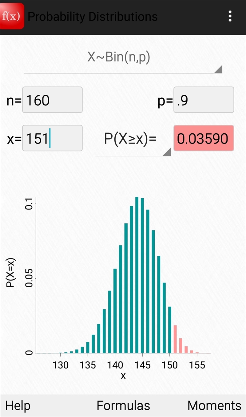 On any given flight, an airline's goal is to fill the plane as much as possible, without overbooking. if, on average, 10% of customers cancel their tickets, all independently of each other, what is the probability that a particular flight will be overbooked if the airline sells 320 tickets, for a plane that has maximum capacity 300 people? what is the probability that a plane with maximum capacity 150 people will be overbooked if the airline sells 160 tickets?