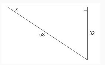 What is the degree measure of x in this triangle? Round only your final answer to the nearest hundredth. Question 3 options: .01° 33.49° .55° 40.01°