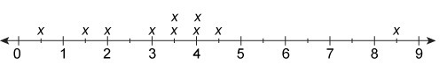 The line plot shows the distances, in miles, run by joggers in a park. How many runners ran at least 3 miles? ____________________________________________ Between what two data values is there the largest