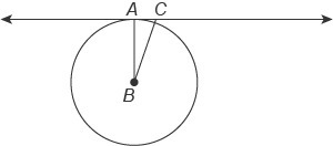 AC←→ is tangent to the circle with center at B. The measure of ∠ACB is 71°. What is the measure of ∠ABC? Enter your answer in the box. m∠ABC = __ °