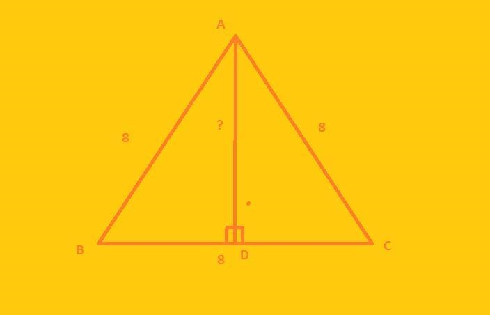 Explanation: As shown in the attached figure, ABC is an equilateral triangle with AB = BC = CA = 8 units and AD is the altitude.