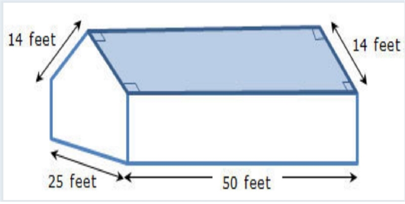 After a storm, the Serafina family needs to have their roof replaced. Their house is in the shape of a pentagonal prism with the dimensions shown in the diagram. A roofing company gave Mr. Serafina an estimate based on a cost of $2.75 per square foot to replace the roof. How much will it cost the Serafina family to have their roof replaced? $1,500 $2,062.50 $3,850 $4,500
