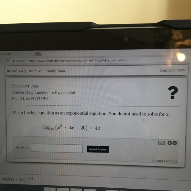 Log (x^2+3x+20)=4x you do not need to solve for x.