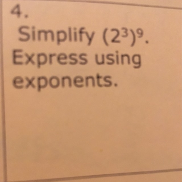 The answer is 2^27 because the 2 is supposed to stay the same and 9*3=27.