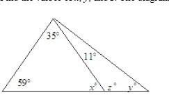Find the values of x,y, and z. The diagram is not to scale. A. x = 86, y = 94, z = 75 B. x = 86, y = 75, z = 94 C. x = 75, y = 94, z = 86 D. x = 75, y = 86, z = 94