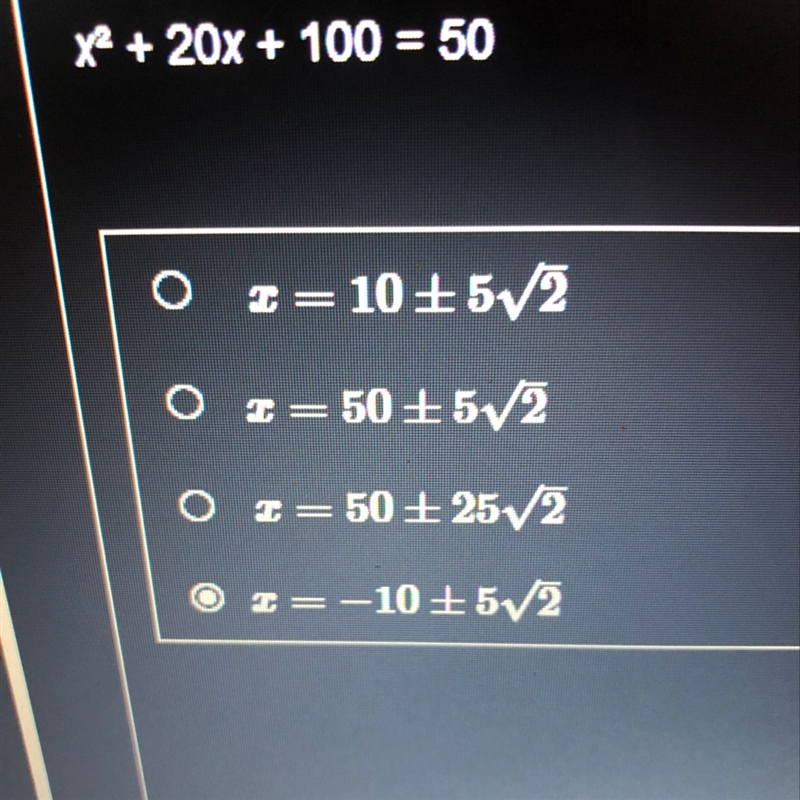 Solve x^2+20x+100=50