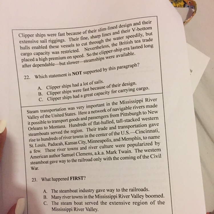 Number 23 is a bit harder more complicated, but after reading your selection I'd say is also number C. due to the part where it says "here a network of navigatable rivers..."