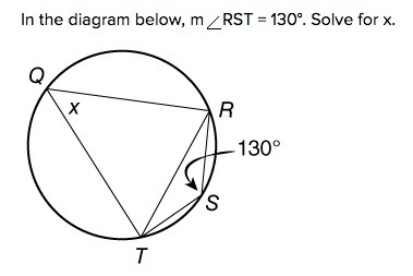 m<RST=130°=[m arc(RQT)]/2