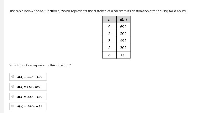 All the functions given in the options are linear functions in the form y=mx+b, then we must find a function with independent term (y-intercept) b=690