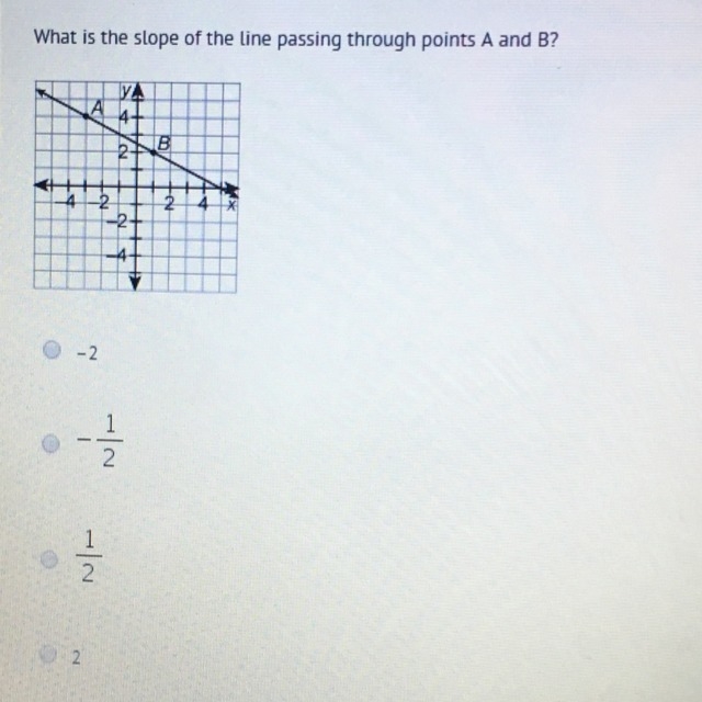 -1/2. Line goes down 1 for every time that it goes over 2. And slope is rise/run