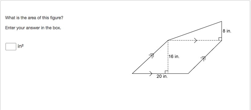 Parallelogram with base a = 20 in. and height h = 16 in.