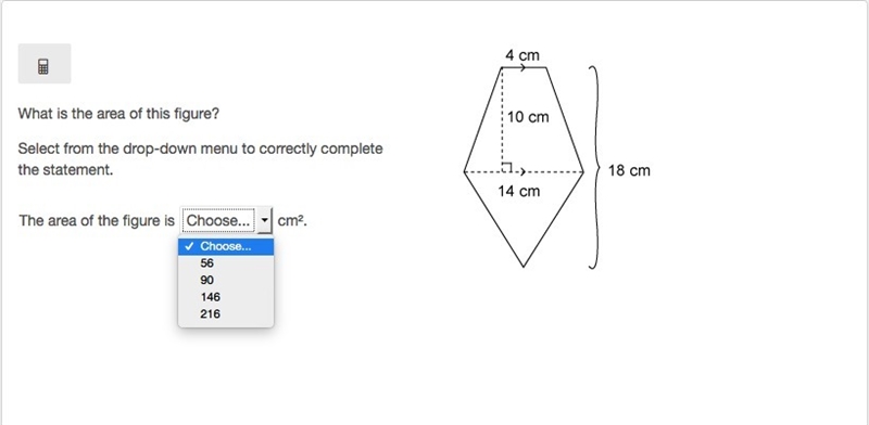 A=A_T+A_\Delta=(1)/(2)\cdot(b_1+b_2)\cdot h+(1)/(2)\cdot b_1\cdot x=\\\\= (1)/(2)\cdot(14+4)\cdot 10+(1)/(2)\cdot 14\cdot8=(1)/(2)\cdot18\cdot 10+(1)/(2)\cdot 14\cdot8=90+56=\\\\=\boxed{146\text{ cm}^2}