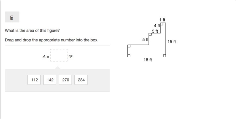 A=A_1+A_2+A_3=1\cdot 4+6\cdot5+18\cdot6=4+30+108=\boxed{142\text{ ft}^2}