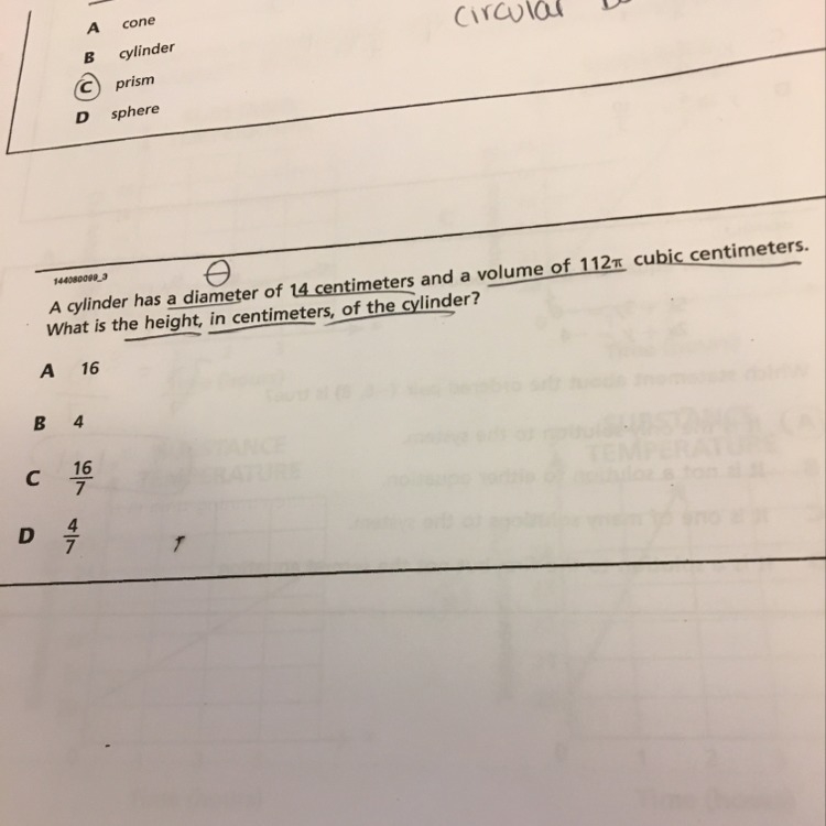 h = (112π)/(π*7²) = 112/49 = 16/7 cm