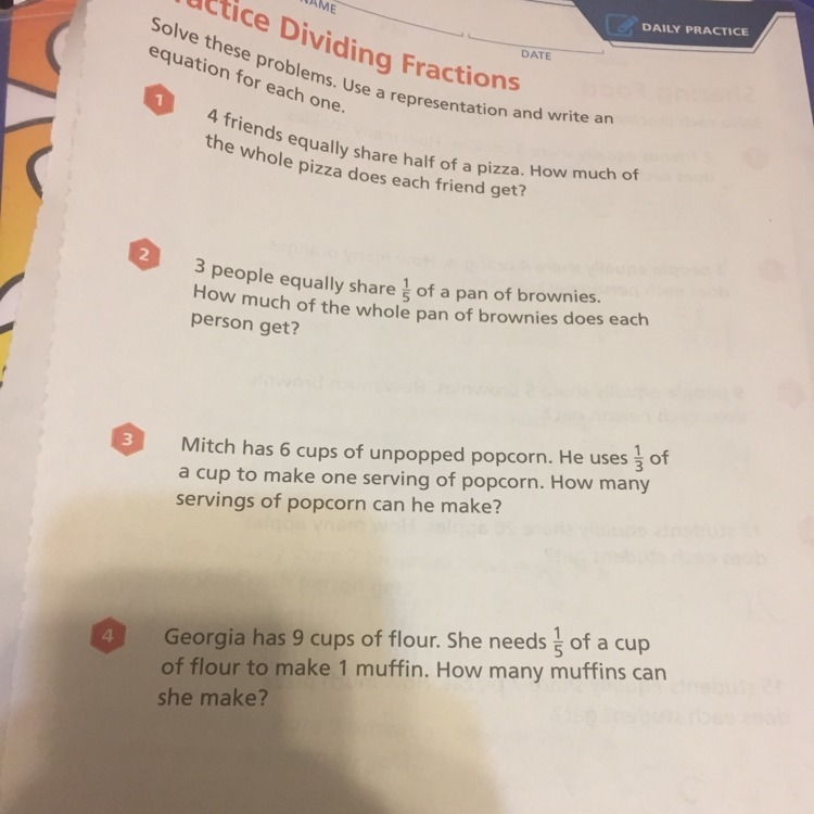 The fourth question 1/5 cup one muffin one cup 5 muffins five times nine equals forty-five muffins
