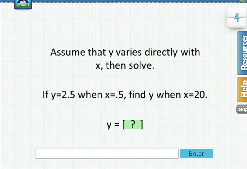 If y=2.5 when x=.5 find y when x=20