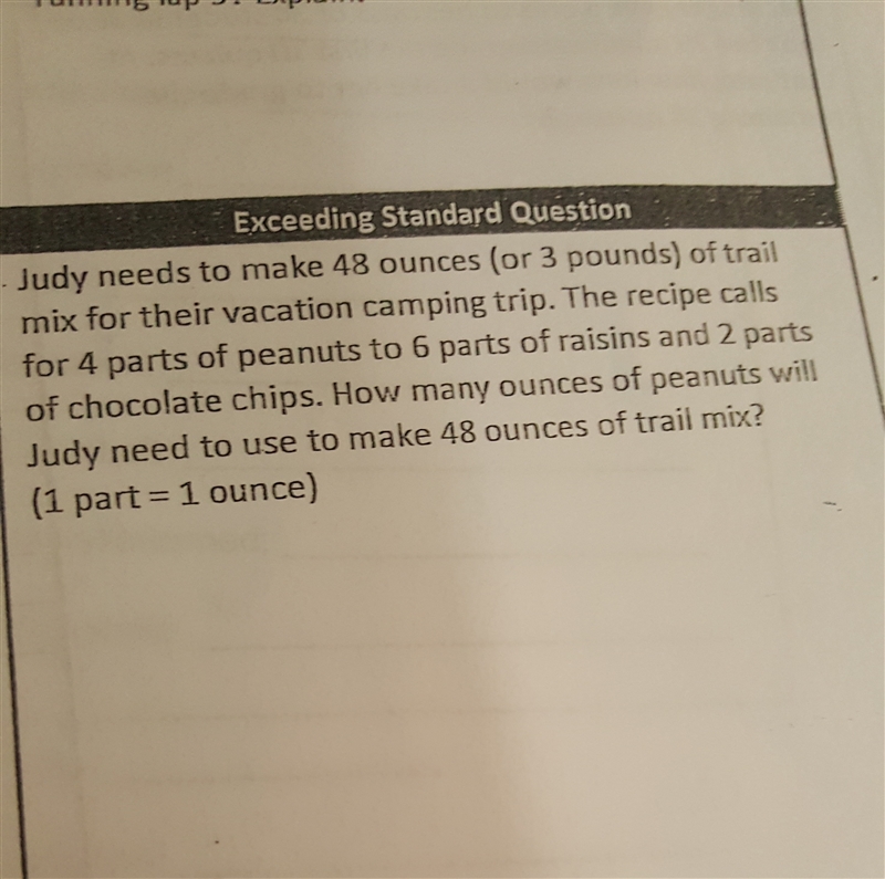 peanuts : raisins : chocolate chips = 4 : 6 : 2