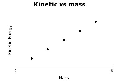 In the graph, the mass of the car is represented on the x-axis, while the kinetic energy is represented on the y-axis. We see that as the value on the x-axis increases, the value on the y-axis increases as well: so, the kinetic energy increases as the mass increases.