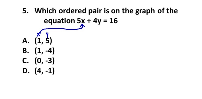 The answer is D.) (4,-1) Because all you need to do is put in the numbers into the equation to make sure it equals 16