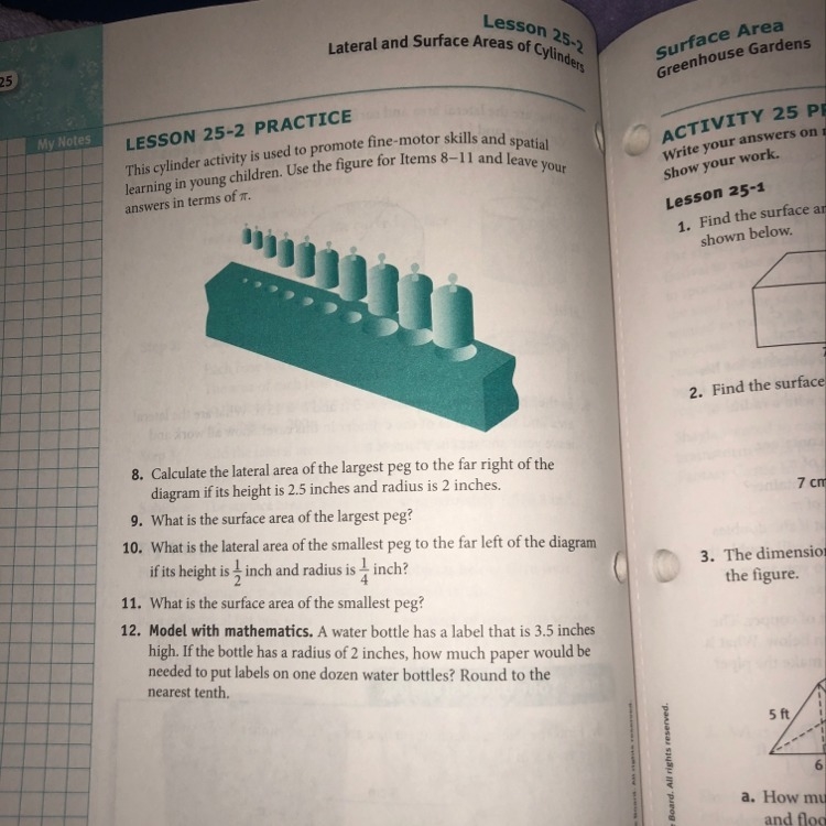 9.) SA= 18 pi or approximately 56.5 inches squared