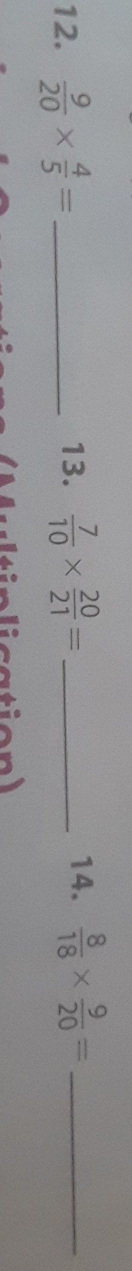 For 13 and 14 since you would have to multiply 7 times 21 and 10 times 21 then that would be multiplied by 20/21 but first you would need to multiply 21 times 10 and 20 times 10 then multiply your answers. Hope this helped:))