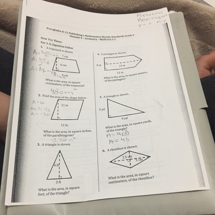 5. You are actually wrong on this one because the area of a triangle is: