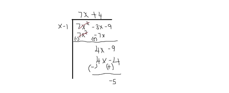 Here we have to divide 7x^2 - 3x - 9 by (x - 1).