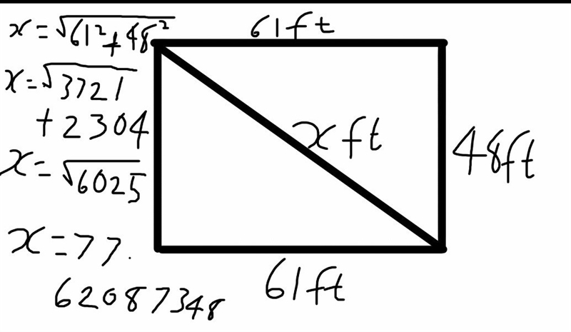 This is a question that will require Pythagoras' theorem as you want to find the length of a diagonal of a triangle and are given the measurements of two sides. I have attached a picture of how to solve this problem.