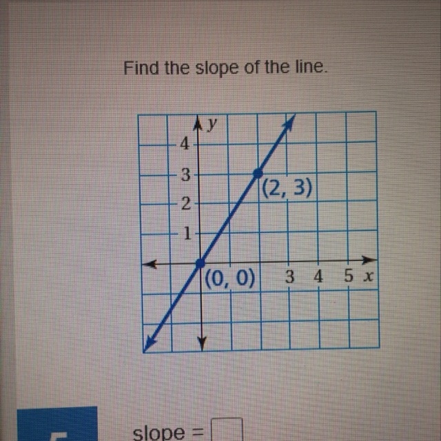 Rise over run: I counted 3 units up and then 2 times to the right which makes the slope 3/2.