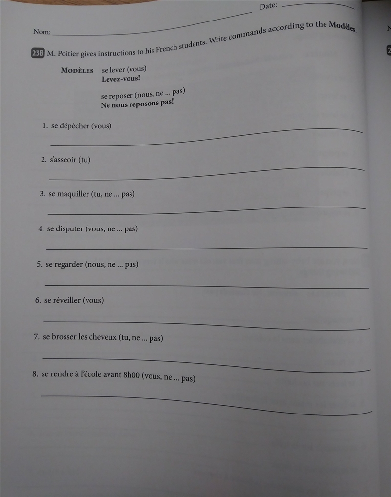 M.Poitier gives instructions to his French students. Write commands according to the Modéles.