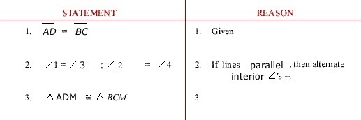 3. ΔADM ≅ΔBCM [ASA congruence postulate]