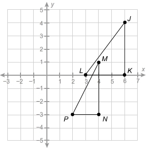 Consider △JKL and △MNP. Which series of transformations maps △JKL to △MNP?