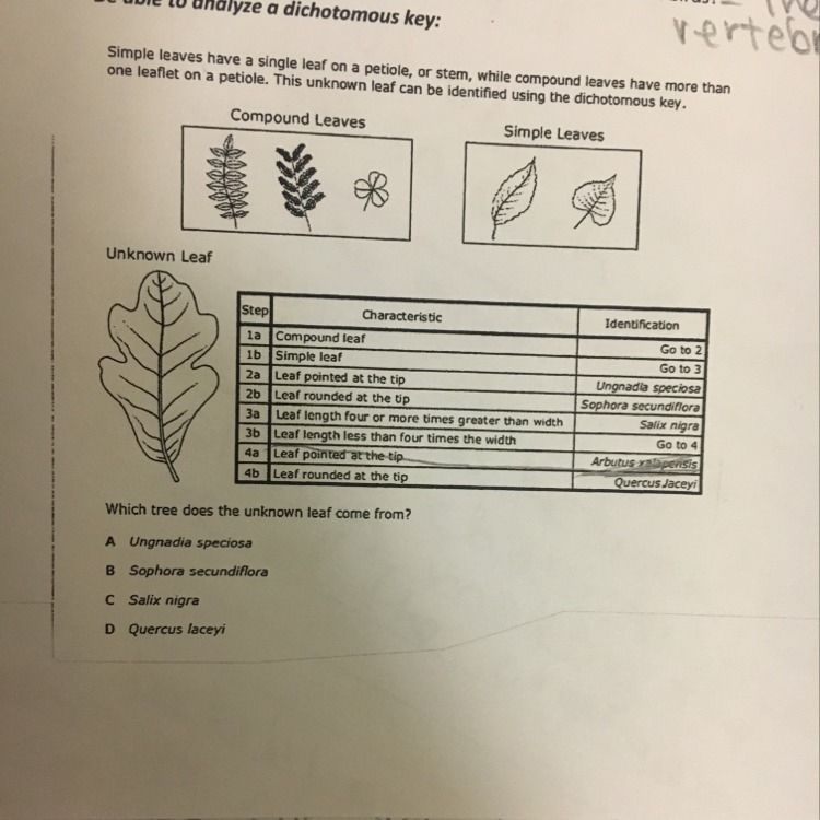 The answer is D Quercus laceyi