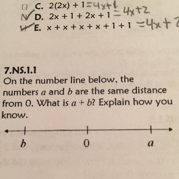 Since the question states that a and b are the same distance from zero, it must also mean that -a = b.