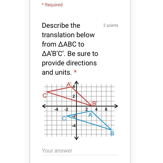 Describe the translation below from ABC to A’B’C. Be sure to provide directions and units.