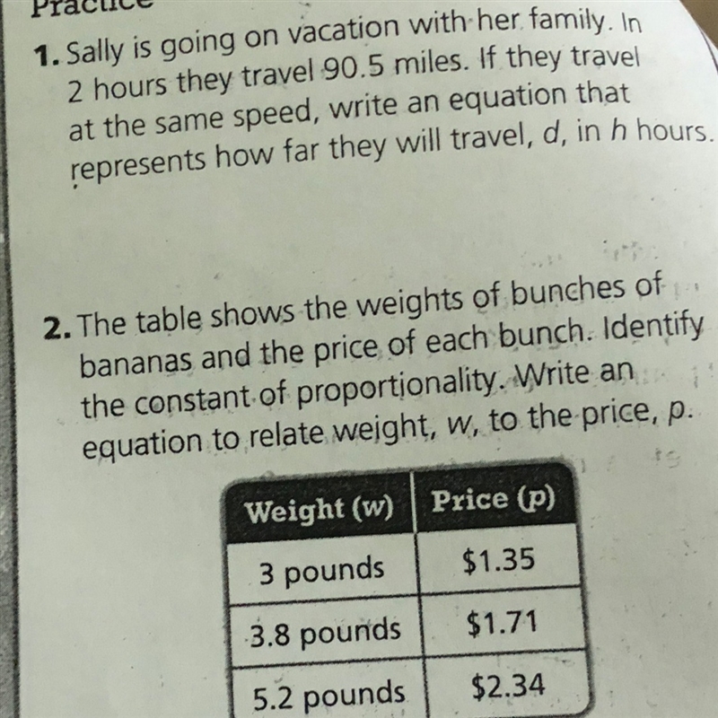 1. They are traveling 45.25 mph so the equation is d=45.25h