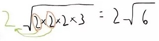 1) Remember when you simplify radicals, you break what's underneath the radical into smaller factors. If a factor repeats under the square root, you can take two of them out and put one of them outside the radical sign (see picture for example). For this problem, you would be doing the reverse of simplifying. You have a 10 on the outside on the left of the equal sign, but a 2 underneath on both sides. If the 10 was taken out, that means there had to be two 10's underneath the radical to begin with. Those two tens would have been multiplied since they are factors, so 10 x 10 = 100. That means x = 100.