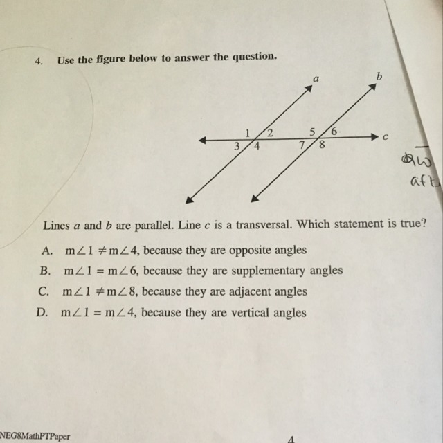 D. is the correct answer because vertical angles are always equal.