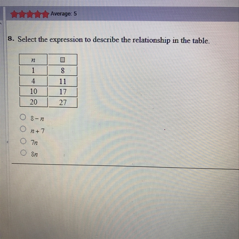 N+7 I believe since every N plus 7 will equal the output