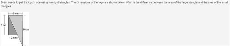 Brent needs to paint a logo made using two right triangles. The dimensions of the logo are shown below. What is the difference between the area of the large triangle and the area of the small triangle?
